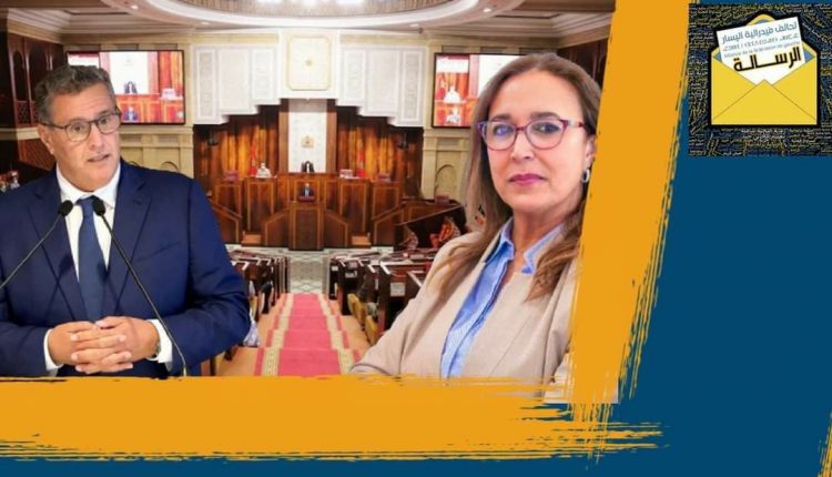 وسجلت النائبة البرلمانية إشارة سلبية بتغييب وزارة مختصة في حقوق الإنسان، “مع تسجيل ملاحظتنا كفيدرالية اليسار بعدم تنفيذ التوصيات الخاصة بحقوق الإنسان، بل استمرار انتهاكها والتضييق على الحريات. وبالمناسبة نجدد مطلبنا بضرورة خلق انفراج سياسي من خلال إطلاق سراح معتقلي الحراكات ومعتقلي الرأي”، مضيفة، أن البرنامج الحكومي لم يحدث القطائع الضرورية مع اختيارات الحكومات التي سبقتها، “والتي كنتم طرفا أساسيا داخلها، رغم رفعكم لمجموعة من الشعارات ذات الحمولة الاجتماعية بل حديثكم عن الدولة الاجتماعية، متناسين أن الدولة الاجتماعية هي رؤية وتصور فكري سياسي اقتصادي واجتماعي مدخله الأساسي التوزيع العادل للثروة، بين الجهات وبين الشرائح الاجتماعية والتي تتطلب القطع مع منظومة الريع والفساد التي تمثل العائق الأساس لأية نهضة تنموية أو تحول ديمقراطي حقيقي وهو الغائب في هذا البرنامج”.