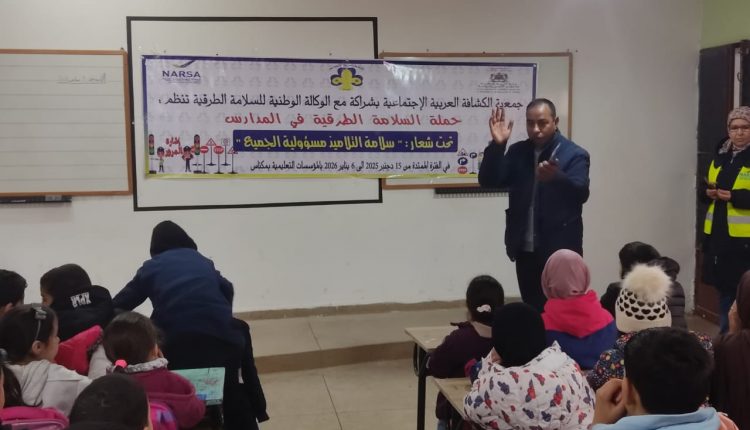 نظمت جمعية الكشافة العربية الاجتماعية – المكتب المركزي، بشراكة مع الوكالة الوطنية للسلامة الطرقية، النسخة الأولى من حملة تحسيسية حول السلامة الطرقية بالمؤسسات التعليمية بمدينة مكناس، وذلك في إطار عملية “دراجة آمنة من أجل الحياة” بشراكة مع الوكالةالوطنية للسلامة الطرقية، خلال الفترة الممتدة من 15 دجنبر 2025 إلى 6 يناير 2026، تحت شعار “سلامة التلاميذ مسؤولية الجميع”.